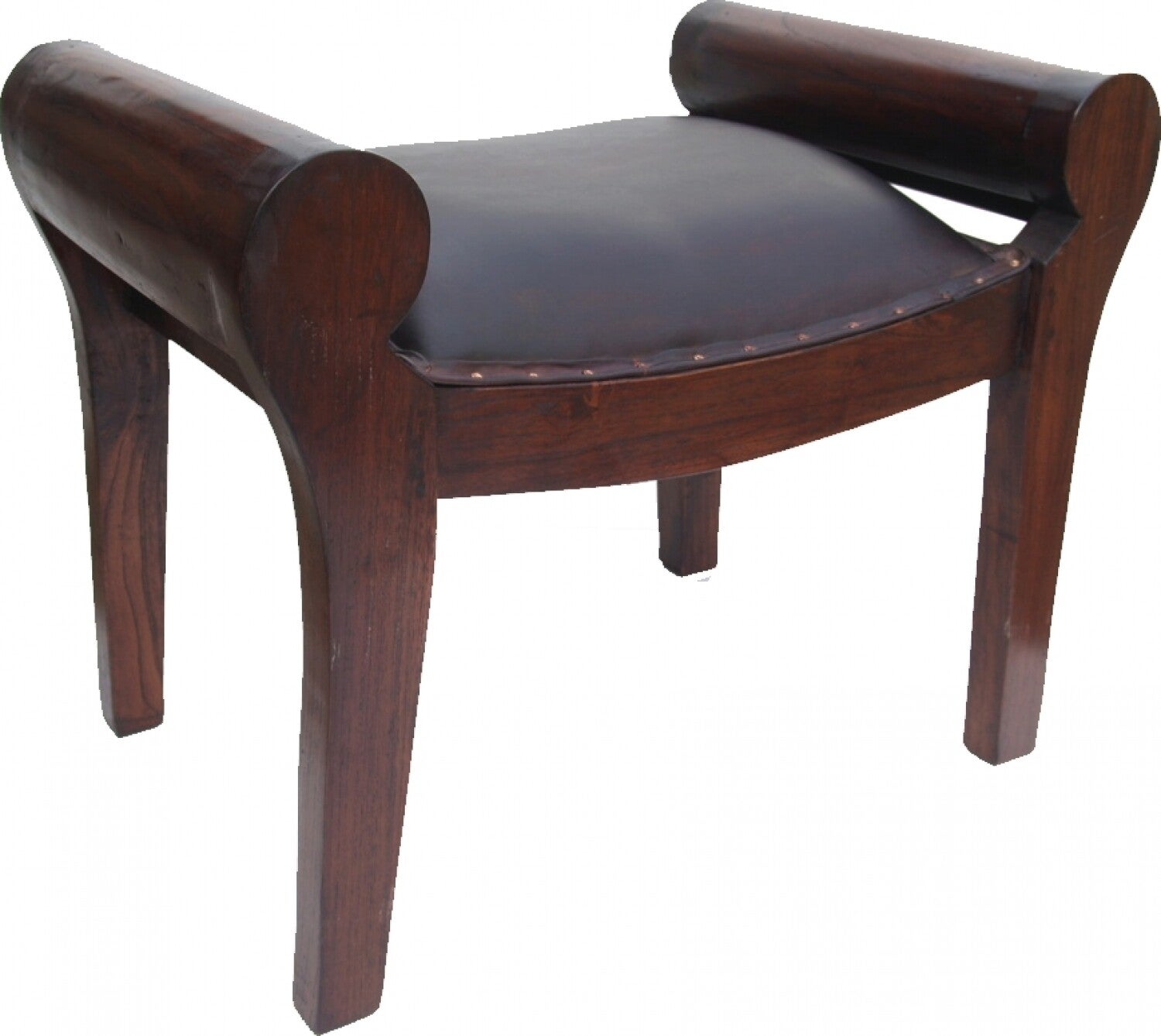 Klein teakhouten bankje met gestoffeerde lederen zitting 50x60x40 cm