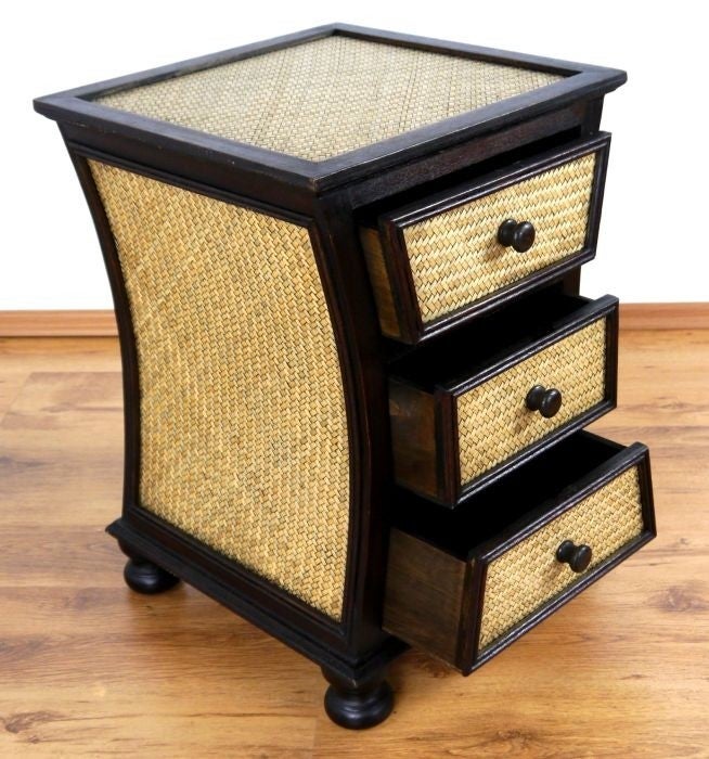 Hoewel het gebogen ontwerp een esthetische uitdaging is, blijft de toegevoegde waarde van dit artistieke ontwerp voorop staan. Veel bergruimte kan deze Aziatische rotan ladekast alleen maar raden. De drie laden nodigen u uit om te vullen. Visueel speelt dit Aziatische dressoir in de premiumklasse. Donker hout gecombineerd met duurzaam rotan vormt een aantrekkelijke kleursymbiose. Discrete kleuren en een avant-gardistische look maken Aziatische rotan dressoirs een zeer gewild meubel.