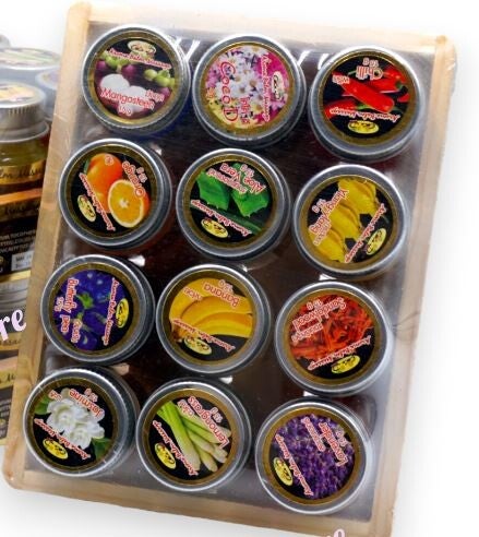 12 Aroma Scents Home Spa Body Relaxing Massage Balm on Wooden Rack
