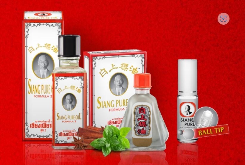 Zwangere vrouwen en vrouwen die borstvoeding geven, evenals mensen met allergieën moeten hun arts vooraf raadplegen! - Buiten bereik van kinderen houden! Zowel Siang Pure Oil Red als White zijn redelijk gelijk, de witte olie is wat zachter, milder dan de rode. Ingrediënten (per 100 ml): Menthol: 35,4 g Pepermuntolie: 41,8 ml Kamfer: 8,0 g Methyl-Acetylsalicylsäure: 3,4 ml Kruidnagelolie: 0,3 ml Kaneelolie: 0,2 ml