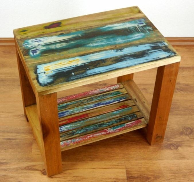 Thaise tafel / nachtkastje van gekleurd gerecycled teak / boothout