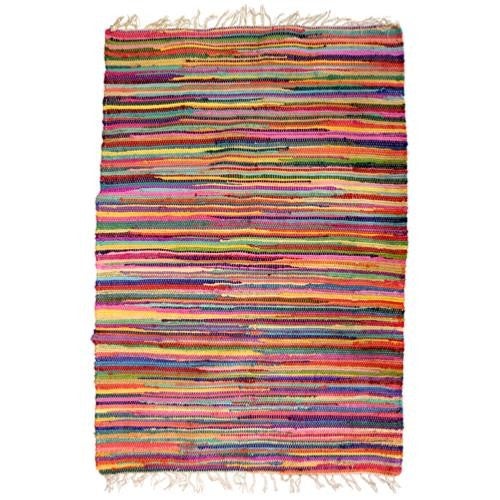 Veelkleurig gerecycled voddenkleed gemaakt van restjes en afvalstukken uit de kledingindustrie.