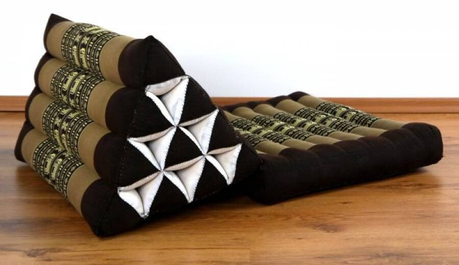 Thais kussen (driehoekkussen, driehoekkussen) Uiteraard dragen we ook de absolute klassieker uit Thailand in onze online shop: het ongevouwen Thaise kussen. Het driehoekige kussen met zijn grote rugleuning en zijn ligoppervlak zorgt voor een speciaal soort ontspanning. De Thaikissen is perfect om te lezen, tv te kijken of voor een korte pauze. Onze kleurrijke wellnesskussens uit Thailand zorgen voor een warme woonsfeer en hebben altijd een praktische meerwaarde. De Thaise kussens zijn dus niet alleen geschikt in de woonkamer, maar ook voor buitengebruik vanwege hun speciale kapokvulling. Omdat onze kussens geen kou op de vloer laten, kunnen ze ook op het balkon of in de tuin worden gebruikt. Zelfs als de Thaise kussens gewoon niet worden gebruikt, zijn ze extreem ruimtebesparend en altijd klaar voor gebruik. De Thaikissen is ook erg populair bij yogaliefhebbers. Het is niet alleen geweldig om te mediteren en te ontspannen, maar met behulp van de driehoek kun je ook veel yoga-oefeningen doen. Onze Thaise kussens zijn gevuld met pure kapok en vrij van chemicaliën! De hoes is gemaakt van puur katoen. Onze online shop staat voor kwaliteit: al onze kussens zijn handgemaakt in geselecteerde familiebedrijven en tijdens de verwerking worden alleen duurzame natuurlijke materialen gebruikt.