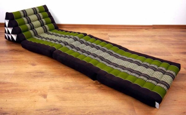Natuurlijk dragen we ook de absolute klassieker uit Thailand in onze online shop: het scharnierende Thaise kussen met drie kussens. Het driehoekige kussen met zijn grote rugleuning en zijn ligoppervlak zorgt voor een speciaal soort ontspanning.