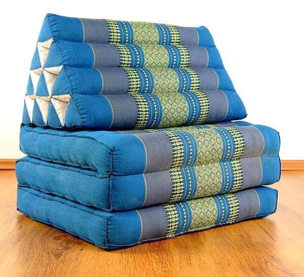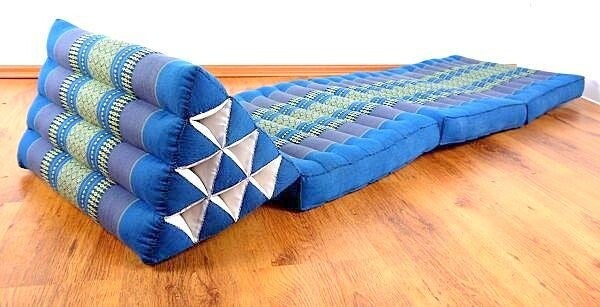 Natuurlijk dragen we ook de absolute klassieker uit Thailand in onze online shop: het scharnierende Thaise kussen met drie kussens. Het driehoekige kussen met zijn grote rugleuning en zijn ligoppervlak zorgt voor een speciaal soort ontspanning.