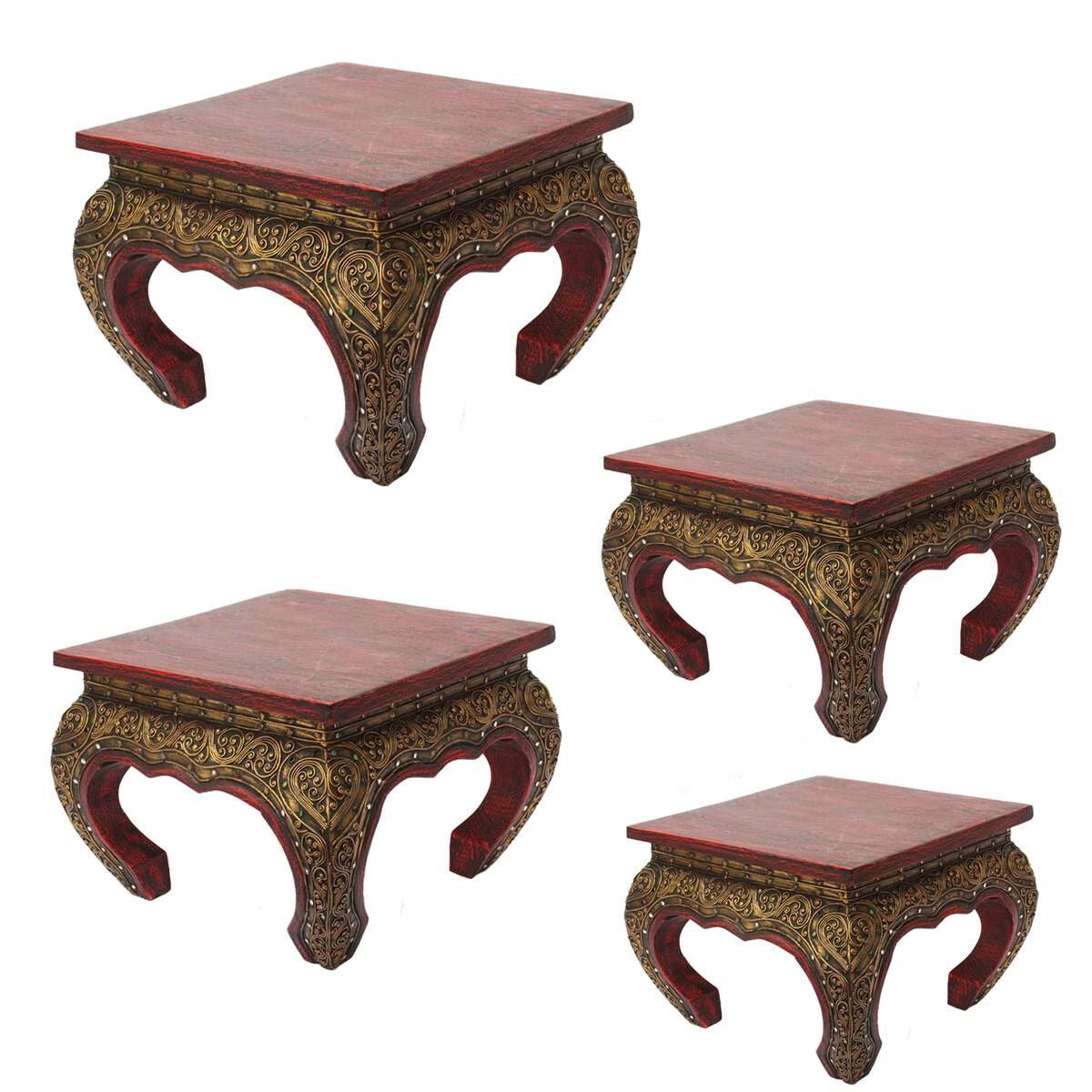 Rode Opiumtafel, bijzettafel, massief houten salontafel, nachtkastje, waterpijptafel